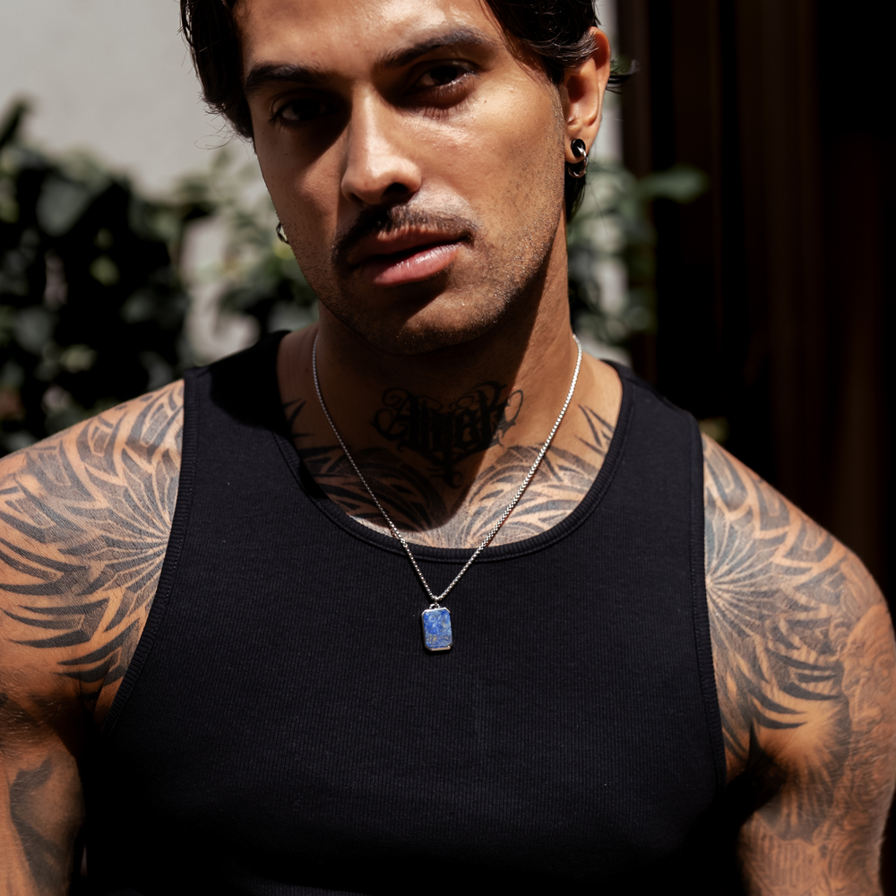 - Blaue Lapis Halskette – Silber: Der leuchtend blaue Lapis Lazuli ist bekannt für seine himmlische Farbe und seine Verbindung zu Weisheit und Wahrheit. Diese Halskette in Silber ist ein echter Blickfang und bringt einen Hauch von Farbe und Mystik in die Kollektion.