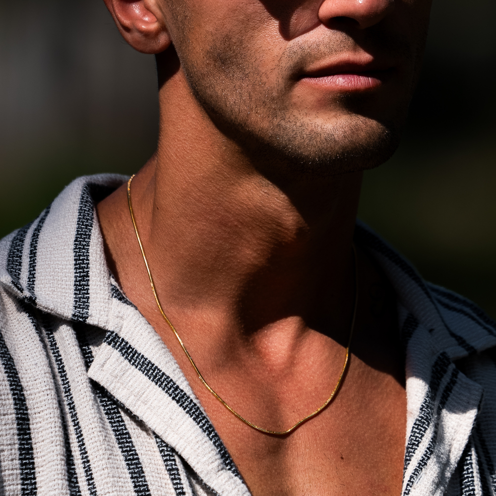 - Box Halsketten: Für einen robusteren und markanteren Look sind die Box Halsketten in Gold und Silber eine ausgezeichnete Wahl. Ihre quadratischen Glieder verleihen diesen Ketten eine strukturelle und maskuline Ästhetik. Auch hier sind Versionen mit passendem Anhänger verfügbar, die den Charakter der Kette unterstreichen.