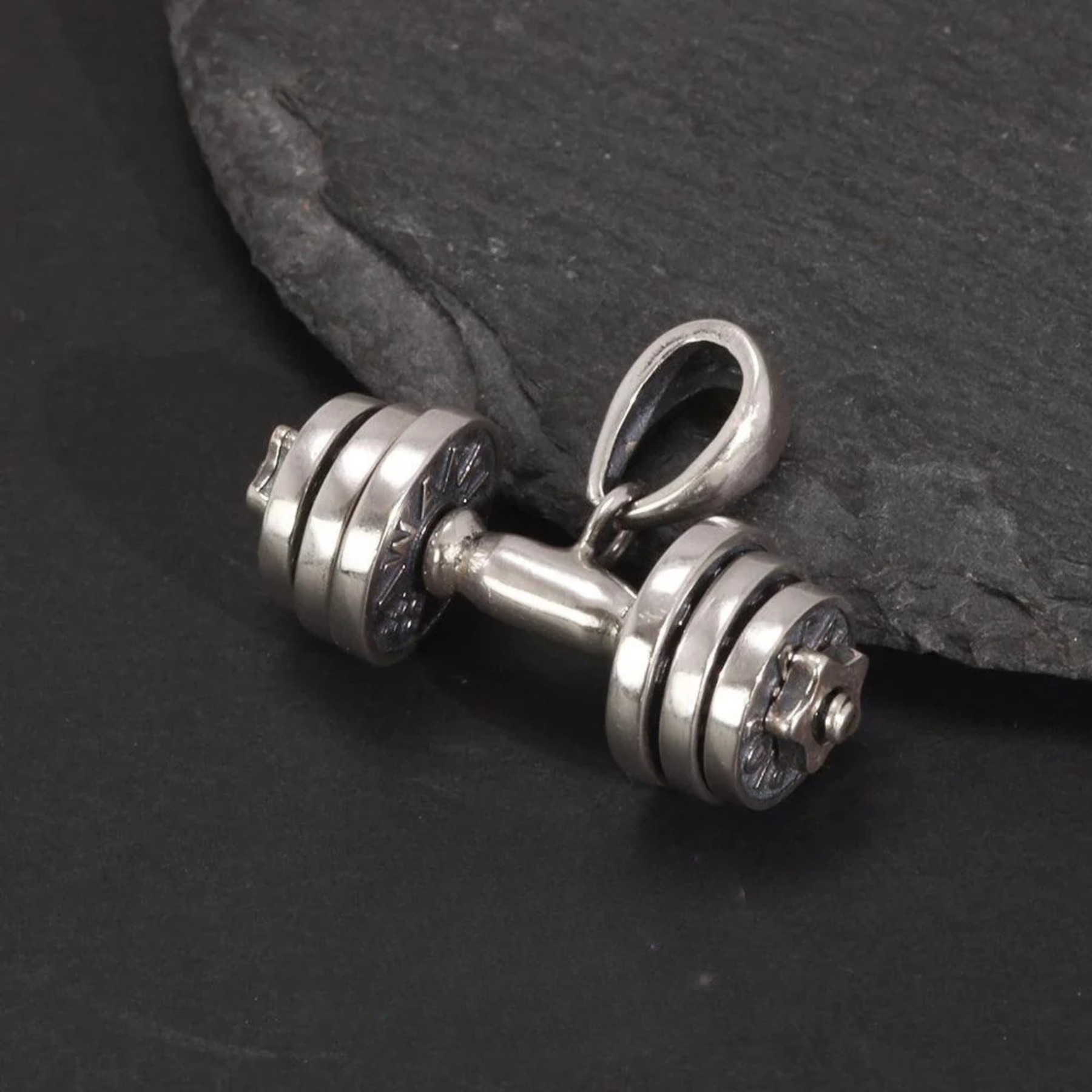 Der detailreich gearbeitete Hantel-Anhänger aus massivem 925 Sterlingsilber verkörpert den Willen, Grenzen zu überschreiten und an sich selbst zu wachsen.